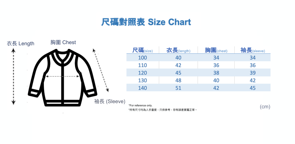 材質成分: 60%棉及40%腈綸材質 (尺寸100 - 140)